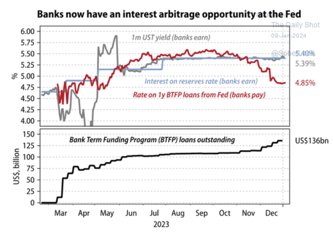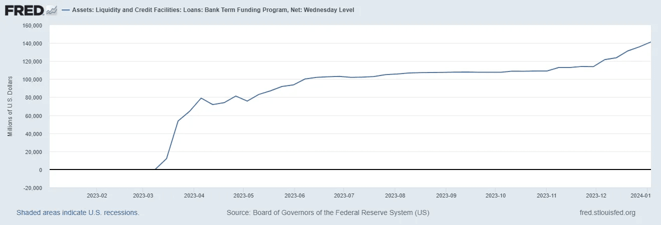 As of January 3, banks are collectively borrowing $141 billion from the BTFP.