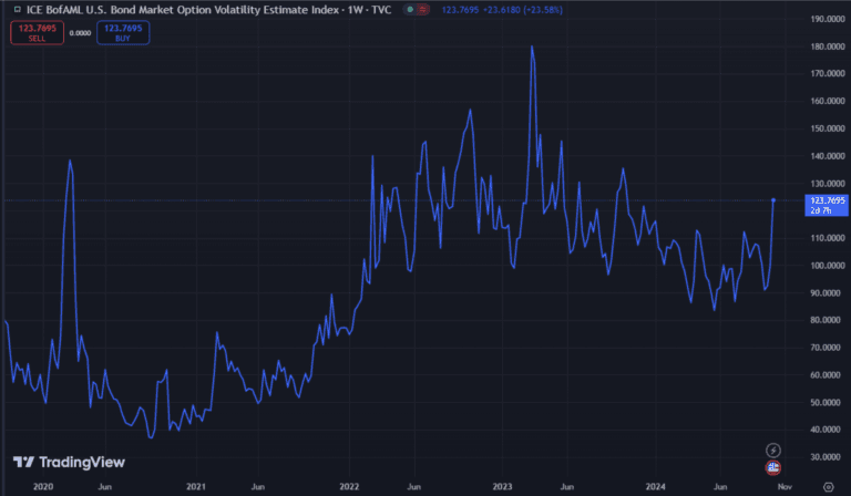 The sustained commitment to grow debt (+7.2% YoY) more than GDP (+5.2% YoY) based on data through Q2 2024 is negatively impacting markets, as we see in Tuesday’s outsized spike in Treasury volatility noted above. The result is a growing deficit that will exceed 7% (or over $2 trillion on an annualized basis) in short course.
