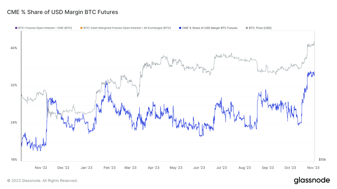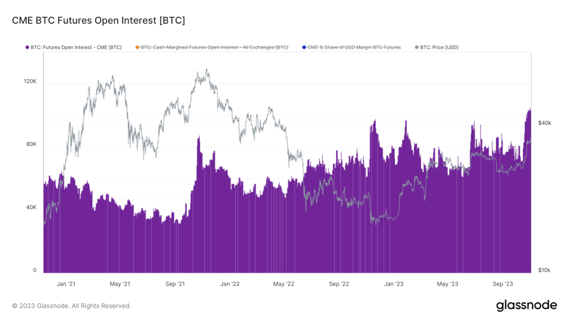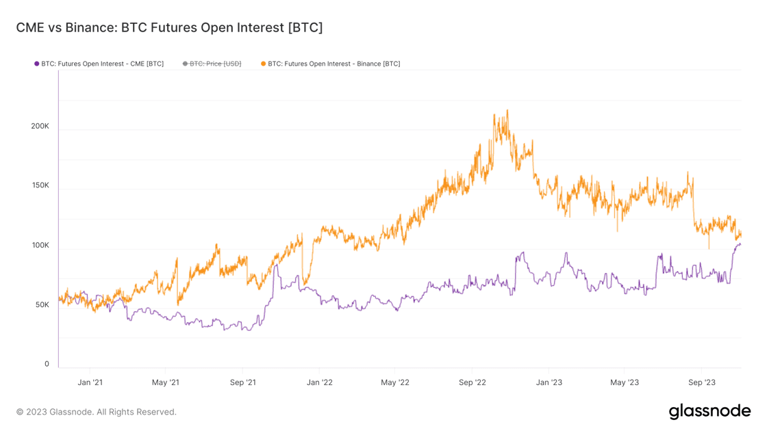 Turning our eyes to bitcoin, institutional interest is unmistakably on the rise. The Chicago Mercantile Exchange (CME) has witnessed a surge in bitcion futures open interest, with figures approaching the total interest on Binance, the leading crypto exchange. This shift is indicative of a changing demographic in bitcoin market participants.