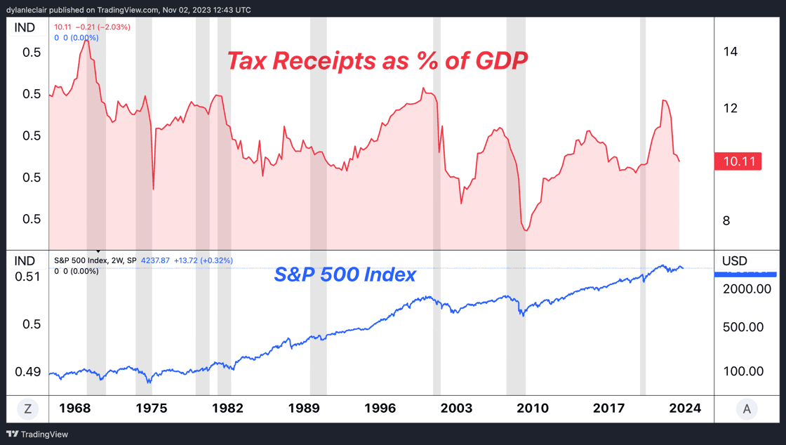 Druckenmiller’s sentiments come on the heels of the federal government concluding its fiscal year with a nearly $1.7 trillion deficit, contributing to a national debt approaching $34 trillion. His view is a testament to the precarious state of the U.S. fiscal situation, with tax receipts declining as a percentage of GDP, signaling a clear disconnect between current administration spending and economic reality.
