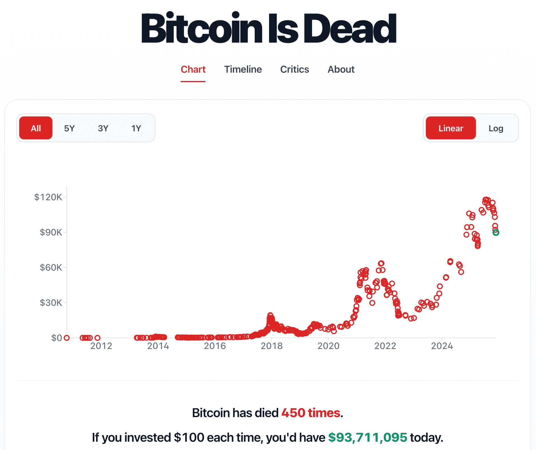 As is tradition with any meaningful correction, the critics and naysayers have emerged to take victory laps and proclaim bitcoin's "death" for the umpteenth time.