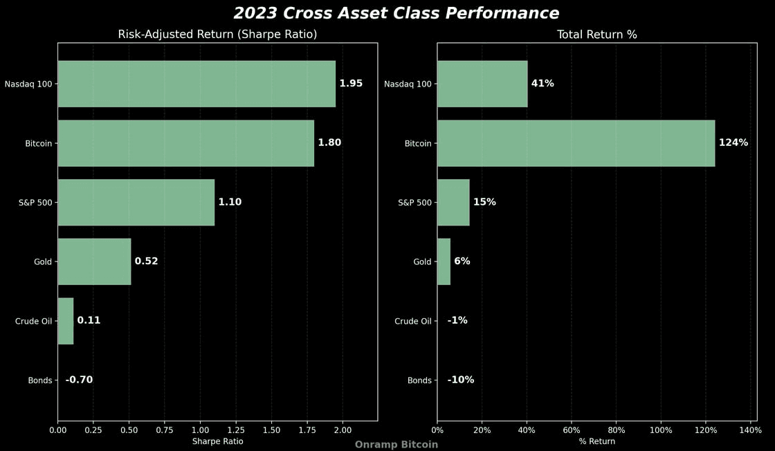 In risk adjusted terms, the Nasdaq is still having an incredibly strong year, closely followed by bitcoin as well.