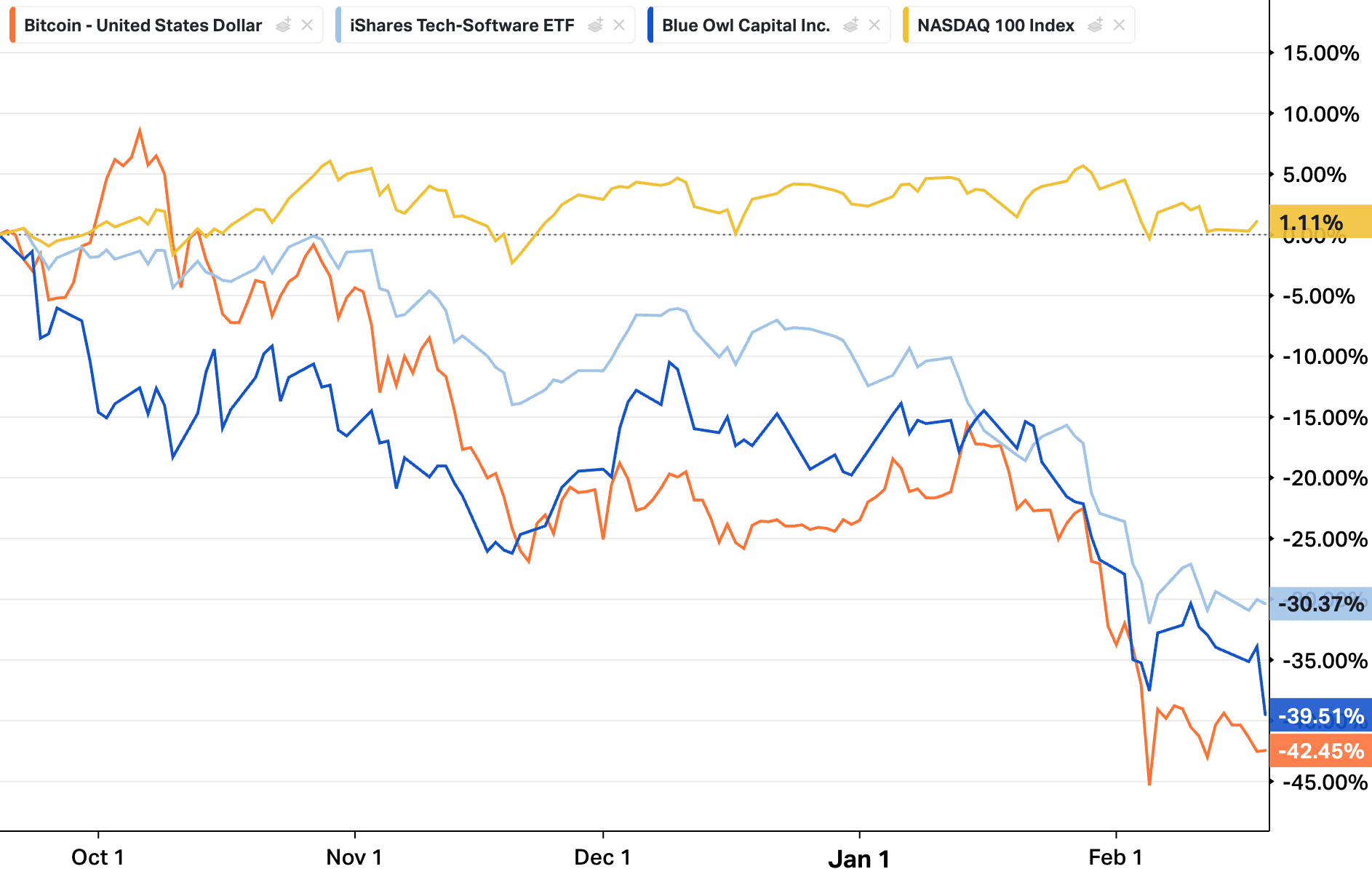 Credit stress rarely announces itself cleanly. It shows up first in redemption queues and rushed asset sales, in the gap between what managers say publicly and what they do two weeks later. Bitcoin has been pricing this dynamic for months. Blue Owl is the first concrete confirmation that the alarm was warranted.