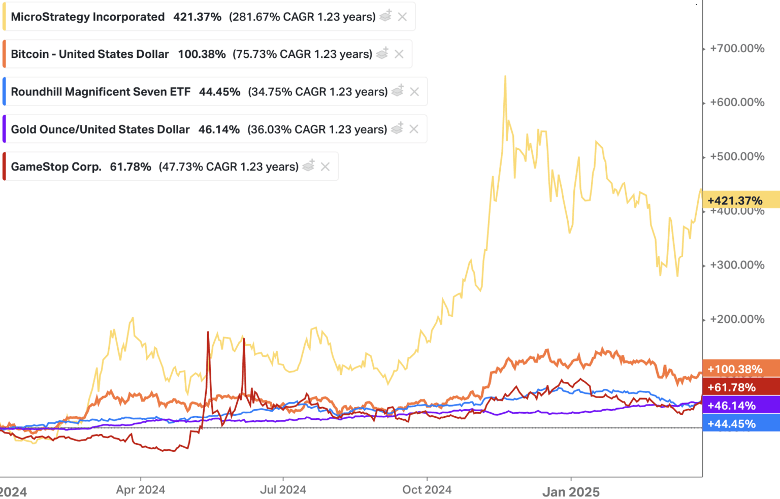 The Domino Effect: GameStop won’t be the last. Rumors already swirl around Meta and Dell, whose CEOs have previously signaled proclivities for bitcoin; and speculation abounds in Japan, where Nintendo might follow in the footsteps of MetaPlanet (the best-performing stock in Japan since they adopted a bitcoin treasury strategy). These moves, if realized, stand to further shift the Overton window for what’s considered fiscally prudent in corporate treasury management.