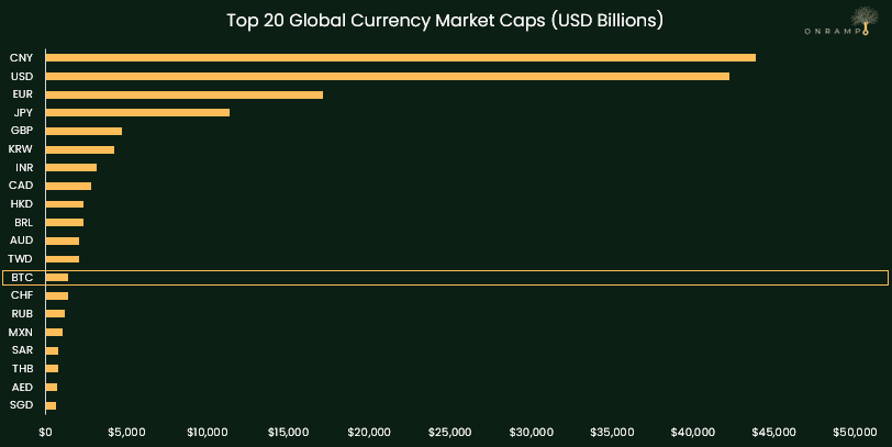 Viewed through this lens, perhaps the most surprising aspect of bitcoin flipping the Swiss franc in market cap is that it has taken as long as it has.