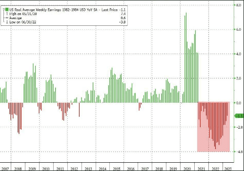 Amidst these inflation trends, Americans’ wages have been lagging for the 25th consecutive month in year over year terms.