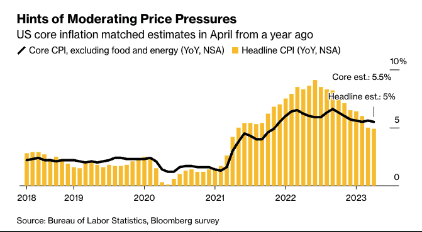 April’s Consumer Price Index (CPI) data came in yesterday, with the result being a slight moderation in inflation. The data revealed a 0.4% increase in consumer prices in April, with headline CPI up 4.9% YoY, marking the first reading below 5% in two years.