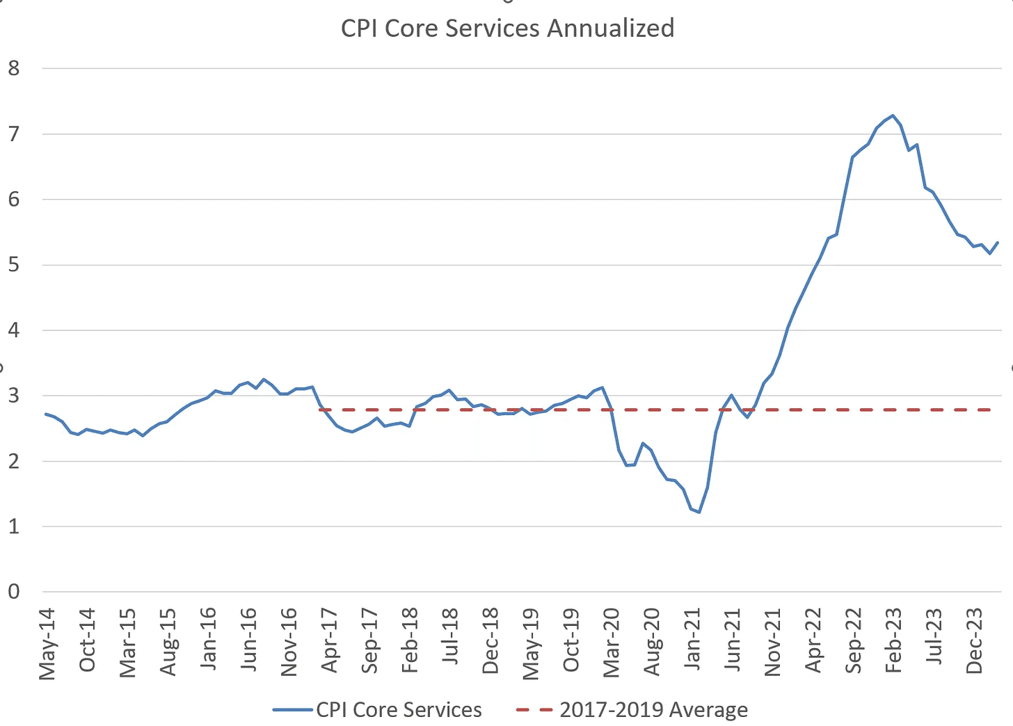 And indeed, CPI Core Services is currently running at over 5% annualized, vs. a 2.8% normalized, pre-pandemic average: