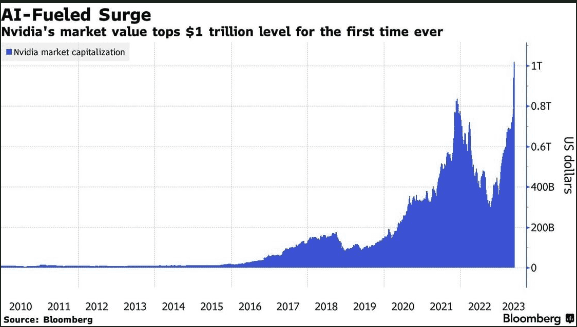 Nvidia Corp.’s market valuation crossed the $1 trillion mark, propelled by its lead in the AI chip and software market.