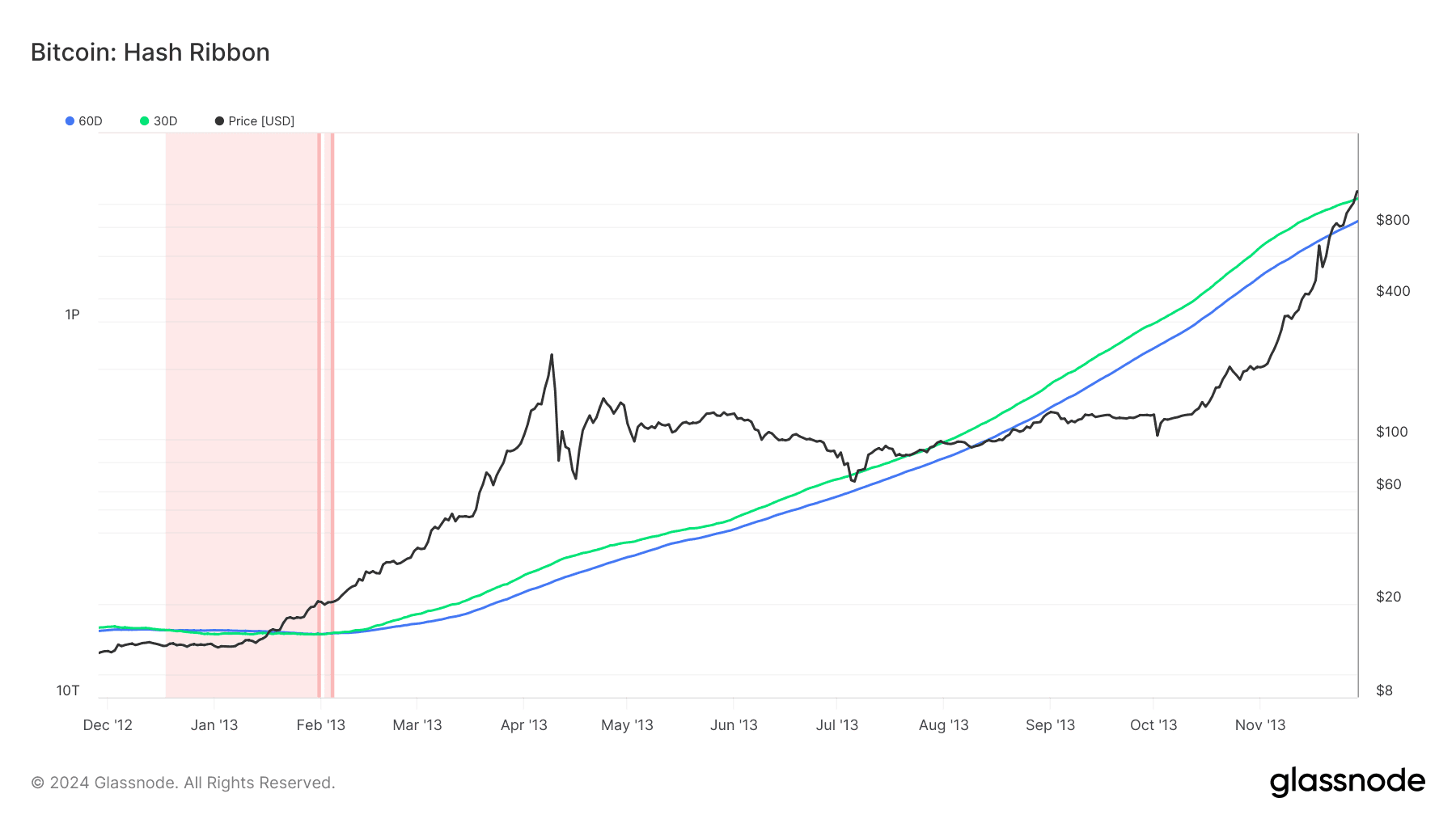 Let’s take a look back at Hash Ribbon and price in the year after the first three bitcoin halvings to contextualize where we are in the current market and get clues as to what might be next.