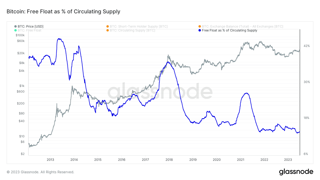With the free float Bitcoin supply – calculated as the balance on exchanges plus the short-term holder supply (who are statistically more likely to spend their coins) – hovering near historic lows at less than 14% of the Bitcoin market cap, we’re seeing a scenario eerily reminiscent of the supply side shock preceding the 2017 and 2021 bull markets.