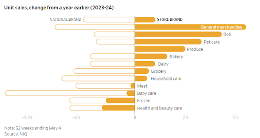Consumers are swapping out national brands for store brands in their shopping carts as they look to reign in costs amid rising prices.