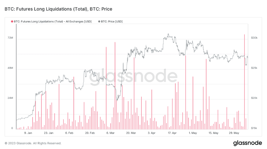 Directly following the announcement of the lawsuit against Binance on Monday morning, there was a knee-jerk reaction from market participants, particularly in the offshore futures/derivatives, resulting in the largest liquidation of long positions in 2023 as short bets piled in.