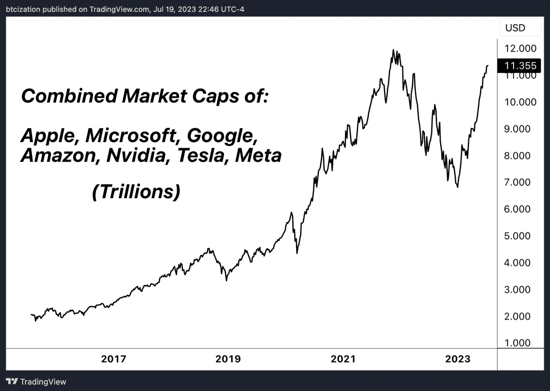 Impressively, U.S. mega-cap stocks have shrugged off a terrible 2022 year to come roaring back, with the aggregate market cap of the S&P 500’s largest seven tech names approaching it’s all time high market capitalization figure of $12 trillion.