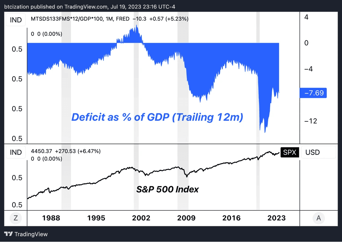 One thing that should be mentioned to counter the points made about the recent disinflationary trend is deficit spending. Deficit spending by the U.S. Treasury is higher as a percentage of GDP than the previous three recessions before it (excluding COVID), before a recession has even taken place.