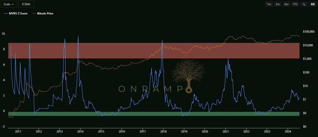 A metric that expands upon, and adds more signal to, realized price is the MVRV Z Score.