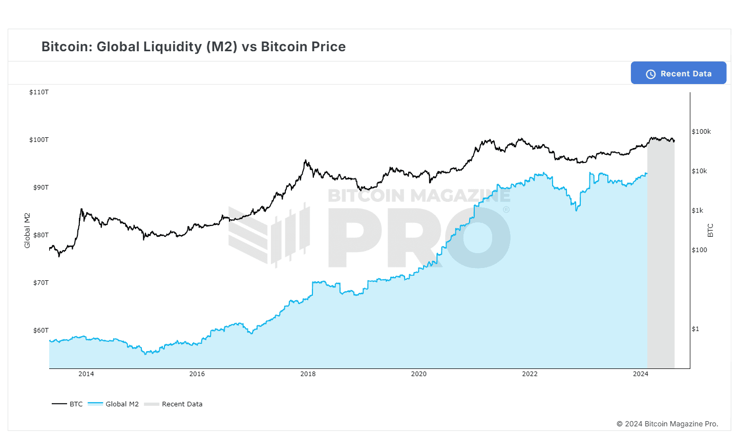 See this chart overlaying the price of bitcoin against global M2, in dollars: