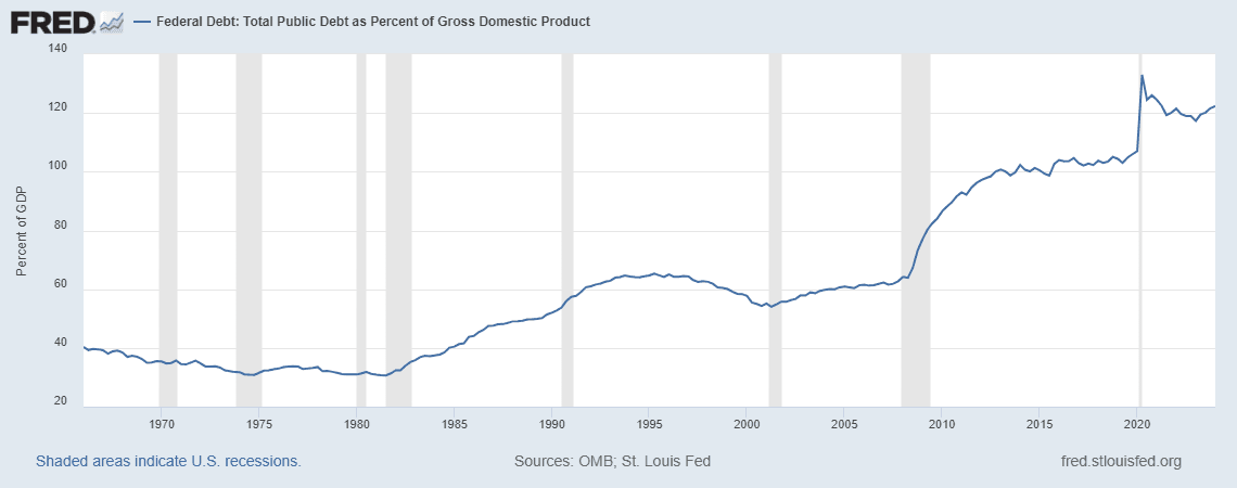 First, debt-to-GDP was between 30-60% for all previous rate cutting cycles, with the exception of COVID. Today it is above 120%: