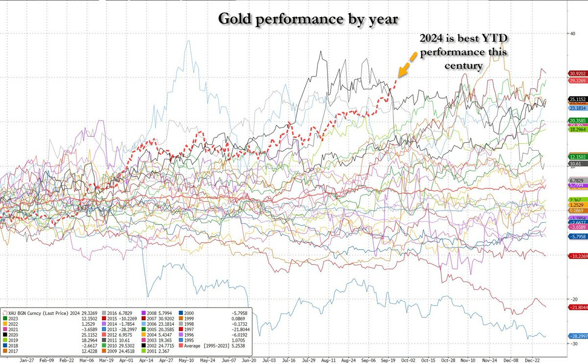 Gold continues to make new all-time highs; this trajectory represents gold’s best YTD performance this century.