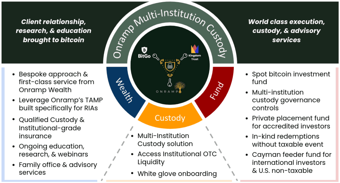 Given the demand we observed over the summer for various bitcoin-exposure vehicles leveraging the multi-institution custody model, Onramp is relaunching to realize our full vision – a comprehensive global bitcoin asset management platform purpose-built for institutions and HNWIs, all built on the foundation of multi-institution custody. In pursuit of our overarching goal to provide clients with a differentiated form of bitcoin custody that maximizes security while minimizing counterparty risk, we’re expanding our platform beyond the Onramp Bitcoin Trust, in partnership with BitGo, to bring to market the very first multi-institution custody solution requiring multiple financial services entities to independently onboard and verify a client’s unique controls when processing withdrawal requests. BitGo, having pioneered the first implementation of a multi-signature wallet and being the industry leader in bitcoin infrastructure for the past 10 years, was a natural partner for us to bring this custodial offering to market. We are equally excited to add Coincover, in addition to Kingdom Trust, to our institutional key partner quorums for Onramp’s growing global client base.