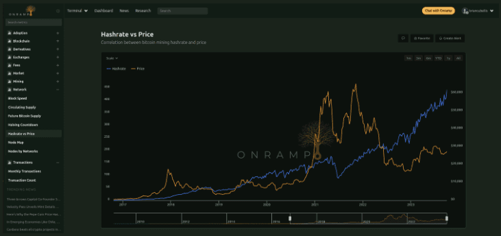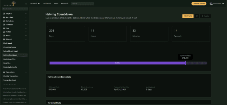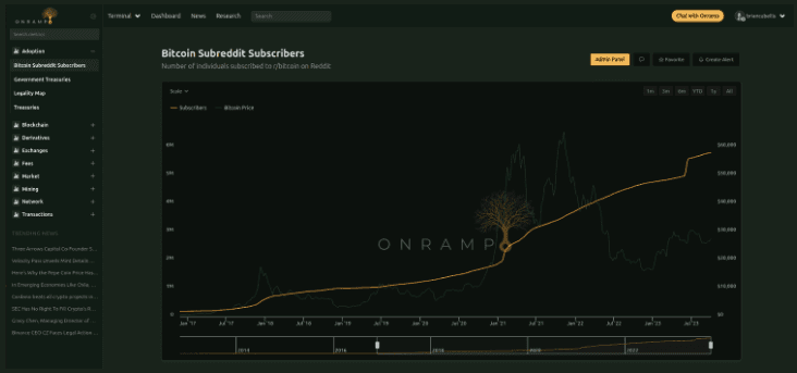 Introducing the Onramp Terminal, a comprehensive bitcoin-only research portal which offers real-time market information, on-chain data, key indicators, adoption metrics, news, research, and collaborative tooling.