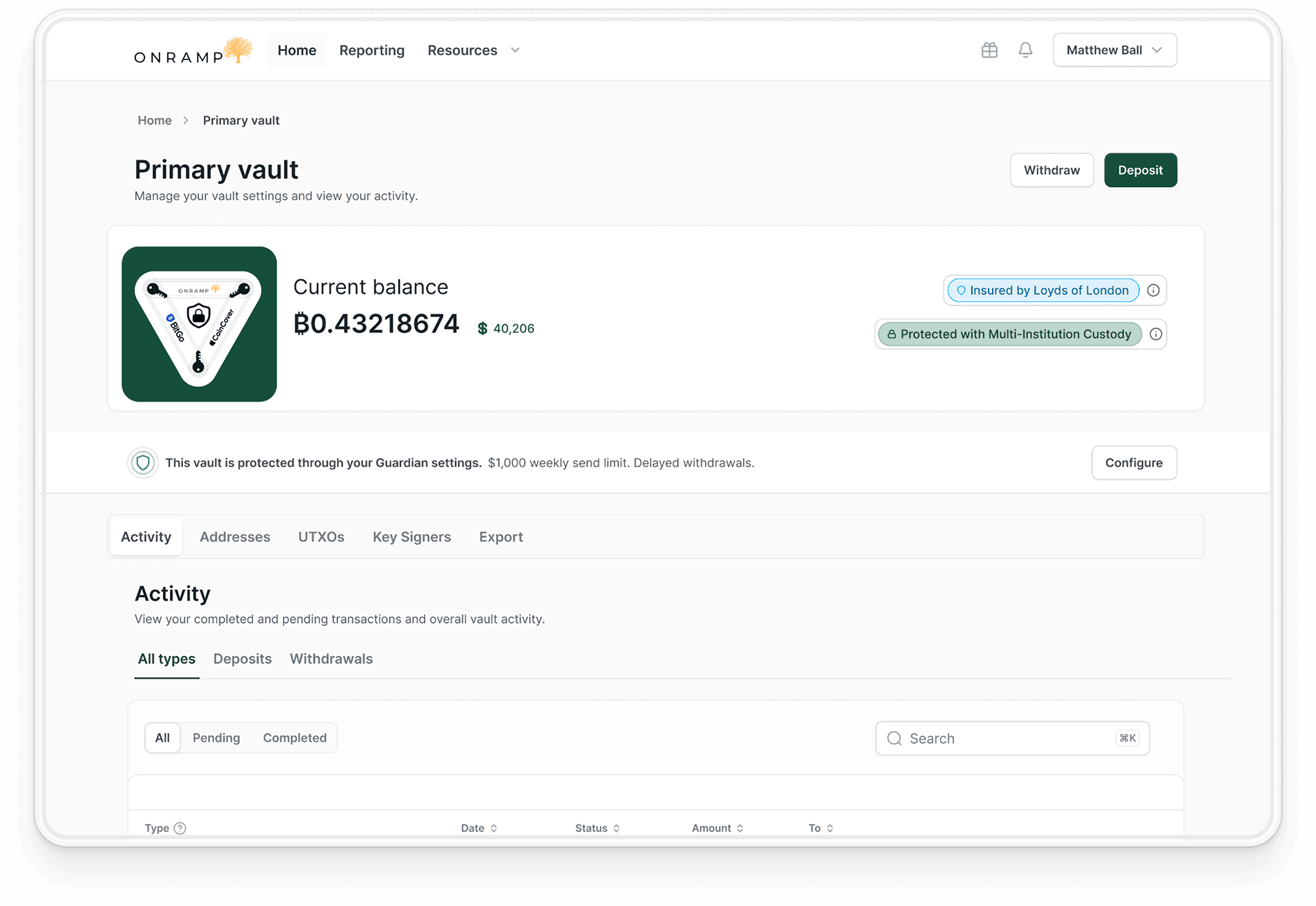 As such, Onramp has rolled out a meaningful expansion of its custody platform experience. We've brought together an upgraded dashboard, self-service onboarding, wallet recovery tooling, integrated trading and cash management, and deeper vault and security controls within a single, unified surface built for long-term stewardship.