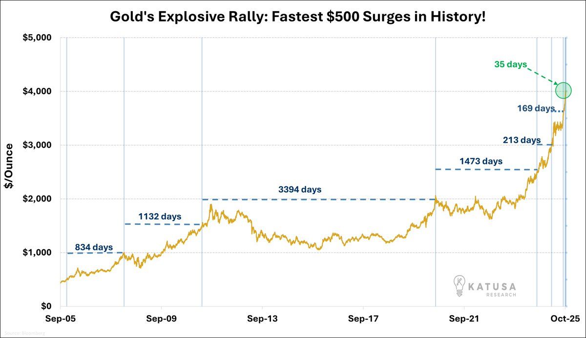 While crypto’s pipes were clearing, gold pushed through $4,300/oz to new records this week, supported by safe-haven demand, softening real-rate expectations, and ongoing macro tension. Bitcoin remains near its highs despite the purge.