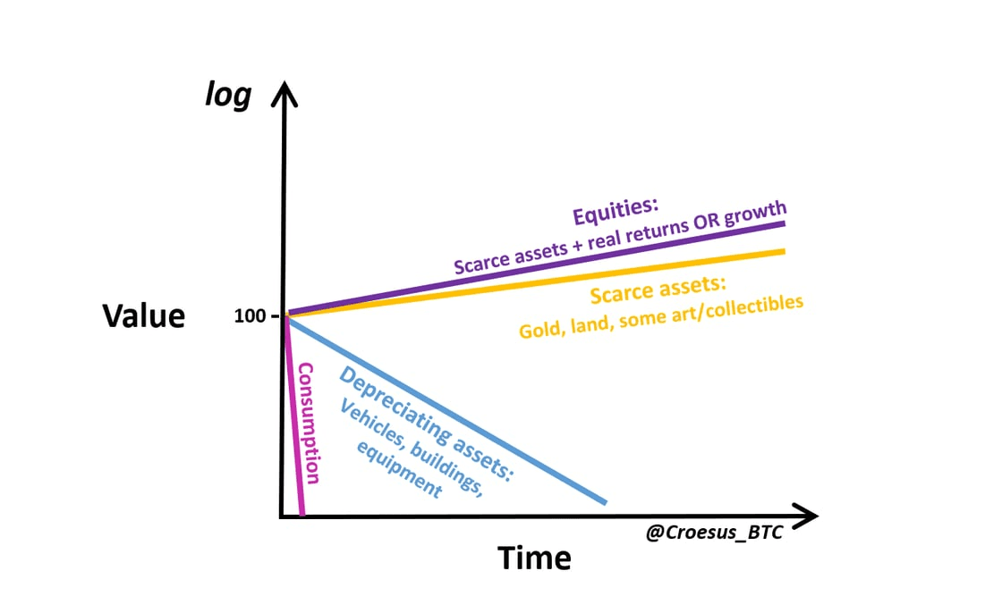 Not all assets are created equal. Some appreciate in value, some lose value over time. This is obvious with things we consume, like the groceries we eat or the clothes we wear. But the same is true of assets that don’t visibly deplete but nevertheless lose value over time through wear and tear, like a car accumulating miles or a building without active maintenance.