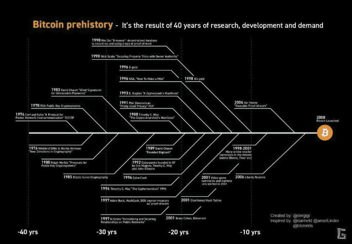 Personally, learning about the pre-history of Bitcoin helped me realize that Bitcoin was not a complete fluke that came out of nowhere. Instead, it was the iteration in a long string of attempts that finally had the necessary components to survive.