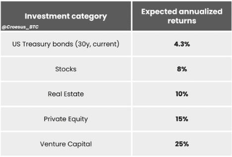 On the other end of the risk curve, we have US Treasuries. Currently, 30-year US Treasuries are yielding 4.3% of low-risk nominal return in a highly liquid asset (no 10-year lockup, not even a 10-minute lockup).