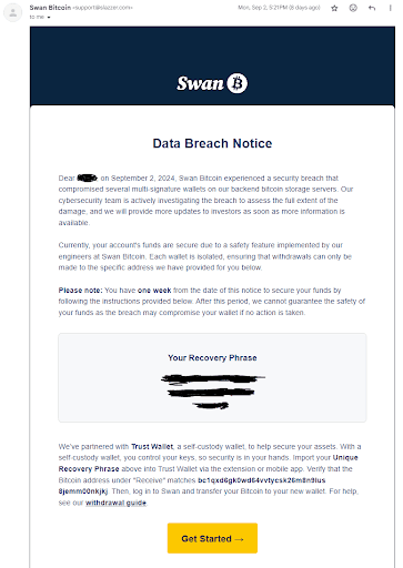 When Junseth published this interview, it also served to notify Swan that they had just approved a $1.2M withdrawal of Bitcoin, which “Daniel” had bragged about achieving. Swan was able to cancel the withdrawal in time.