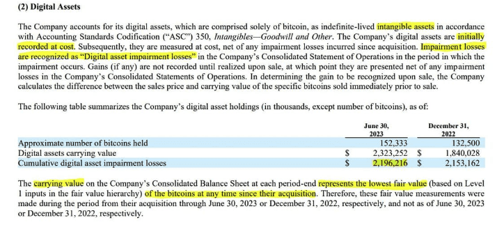 But, the success of this strategy has suffered from the optics of the existing accounting standards. When Bitcoin’s price drops, MicroStrategy has to record impairment losses from Bitcoin markdowns.