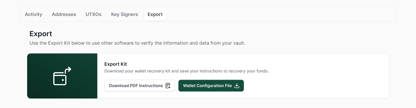 Even in the MIC model, the user should have access to the information they need to remain confident that their bitcoin is secure. To that end, we’ve enabled clients to download their Vault Configuration Files directly from the dashboard, while each institution's private keys remain safe.