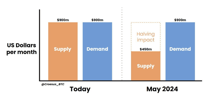 There will only be $450M of Bitcoin being created each month, but $900M of demand. This is a guaranteed, predictable, reliable supply shortage. It will begin in April 2024.